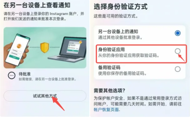 ●解决办法:点“ 试试其他方式 ” 然后选择 “ 身份验证应用 ”,可以参考教程操作【脸书双重验证教程】https://helpme.accountboy.com/docs/accountboy/accountboy-1g3hqn4iedns4