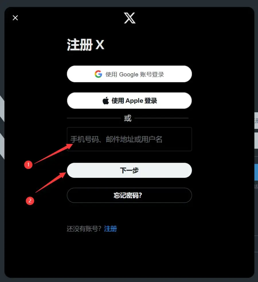 ● 在登录页面中,输入你的用户名确保输入信息准确无误。然后点击下一步。