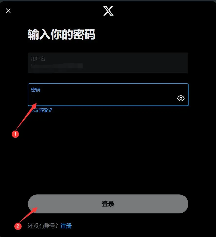 ● 随后输入密码,确认信息后,点击“登录”按钮,即可进入你的推特主页。